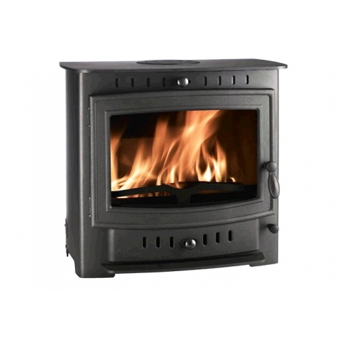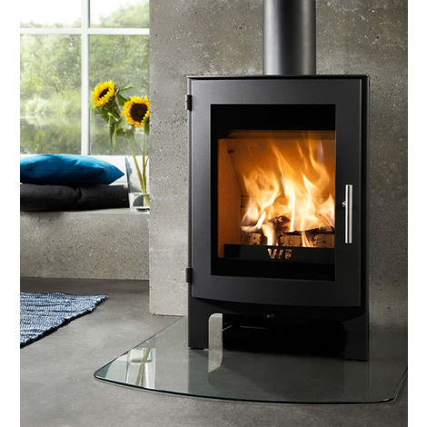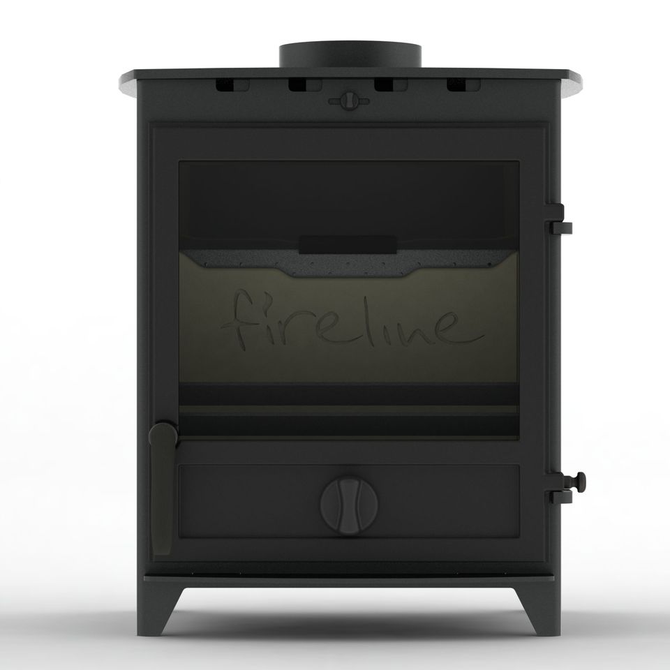 The Fireline FX8 or FXP8 is a heavy weight stove, made from steel with a traditional cast iron door with extra wide ceramic glass giving a spacious flame viewing window.