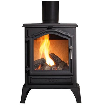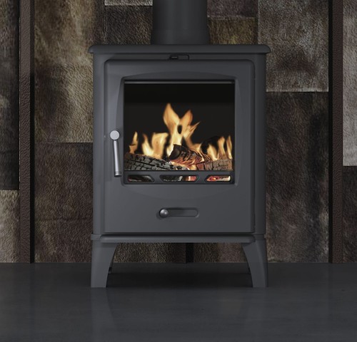 Accona 5kW max output multi fuel stove, in cast iron construction for max heat transfer. Ability to burn wood or smokeless fuel. Features a ceramic lining and and airwash system for cleaner glass.